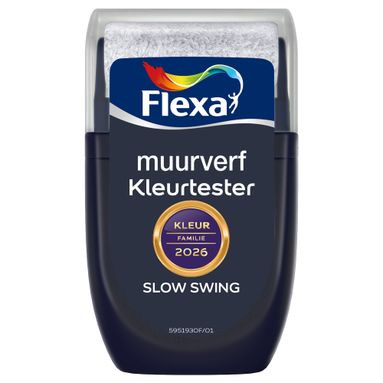 Flexa Slow Swing is een diepe en stijlvolle blauwtint en één van de drie kleuren uit de Flexa Kleurfamilie van het Jaar 2026. Met de tester breng je de kleur direct aan op de muur en krijg je een realistisch beeld van hoe deze tint jouw interieur versterkt. Slow Swing geeft elke ruimte karakter en diepte.